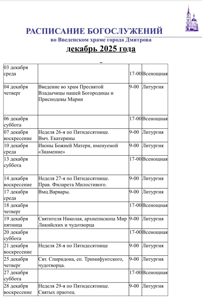Введение во храм Пресвятой Владычицы нашей Богородицы и Приснодевы Марии